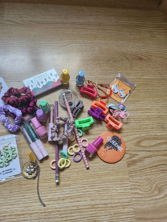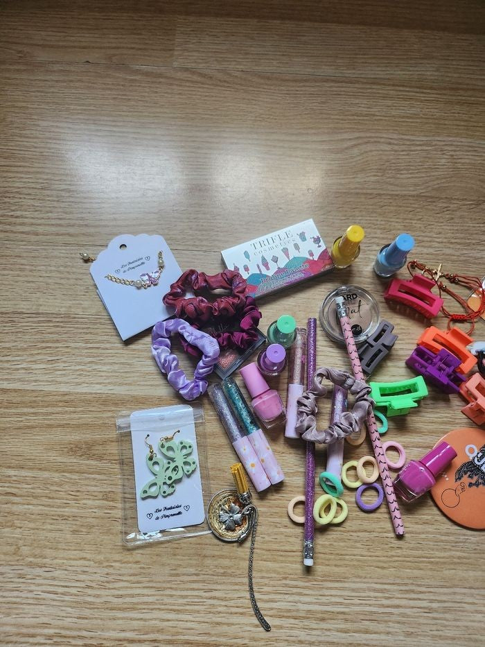 - maquillage ( fard à paupières, gloss, vernis à ongles, faux ongles,masque, rouge à lèvres...)
