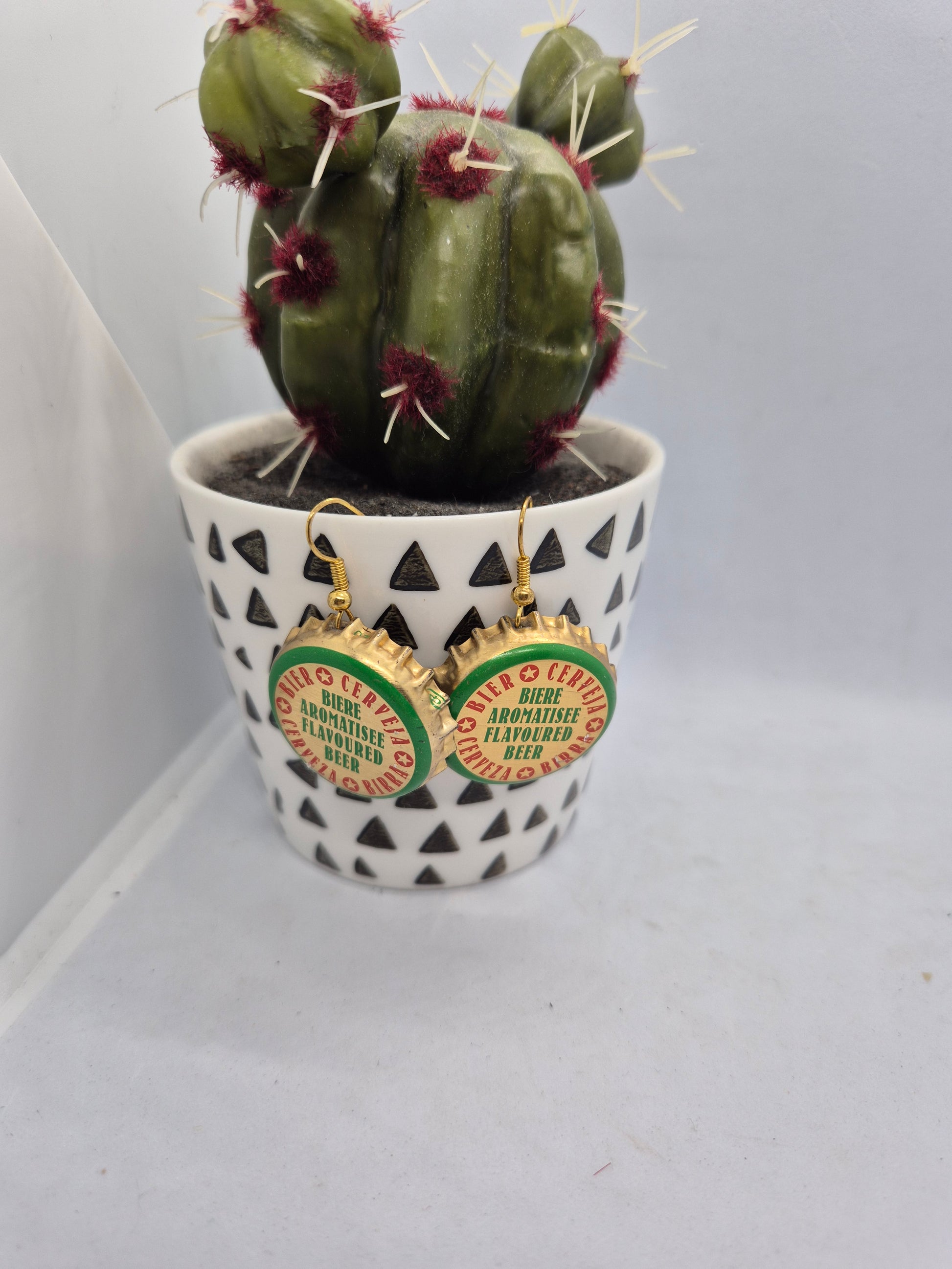 Ces boucles d'oreilles capsules de bière vous donneront un look unique et original. Leur couleur doré, vert et rouge apportera une touche de fantaisie à toutes vos tenues. Les crochets en métal dorés assurent un confort et une sécurité optimale. Une façon élégante et amusante de montrer votre amour pour la bière.