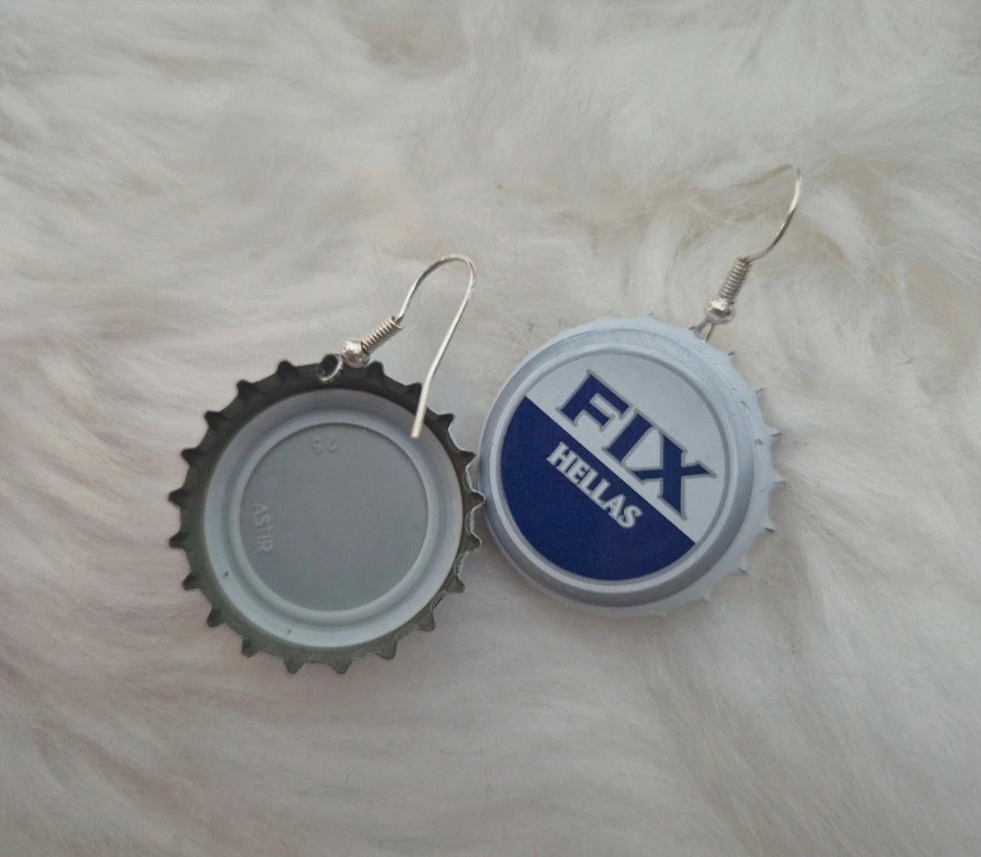 Ces boucles d'oreilles uniques, arborant un design inspiré des capsules de bière, sont un accessoire original.