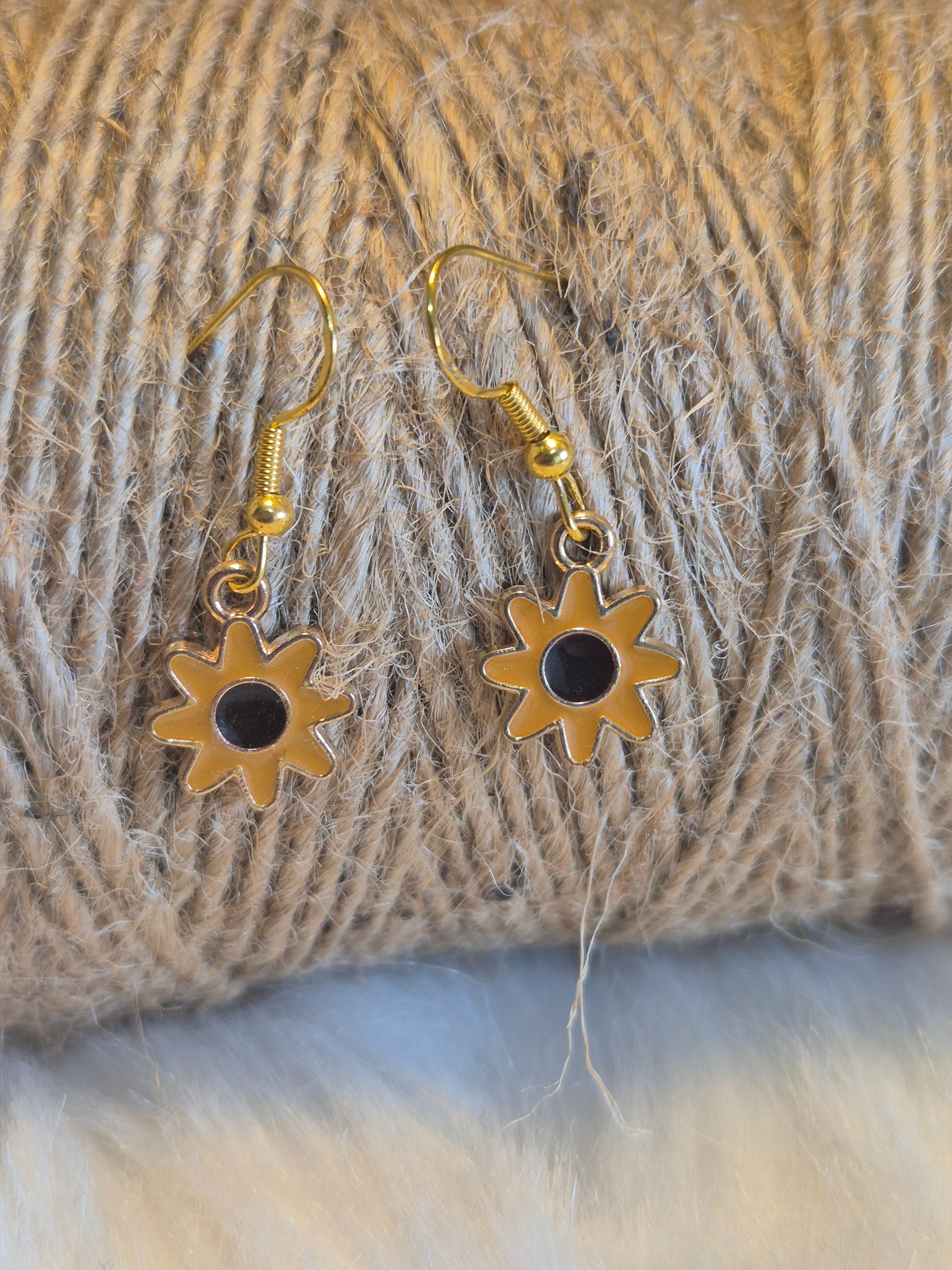 Boucles d’oreilles fleurs moutarde et marron 🌼🍂 #Bijoux #Mode #Automne