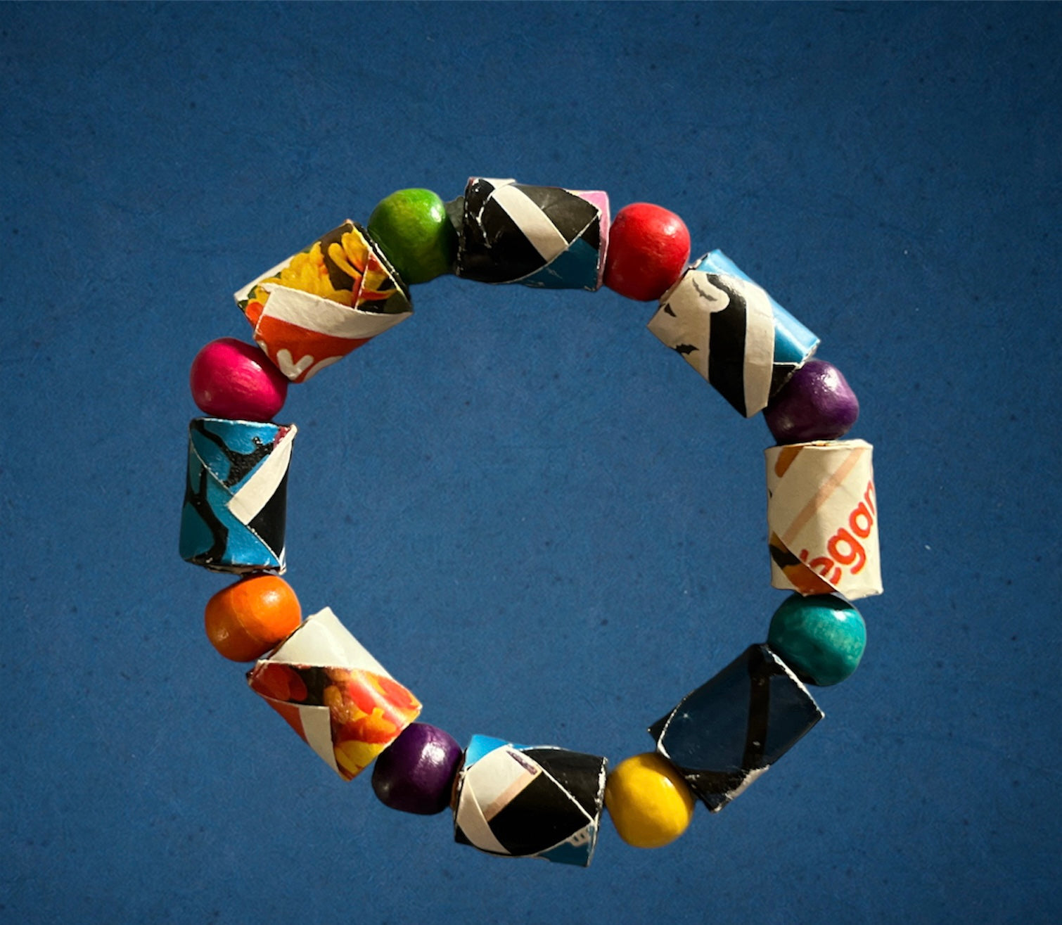 Avec des perles en bois multicolores et des perles en papier multicolores, ce bijou aussi doux qu'original saura vous enchanter !