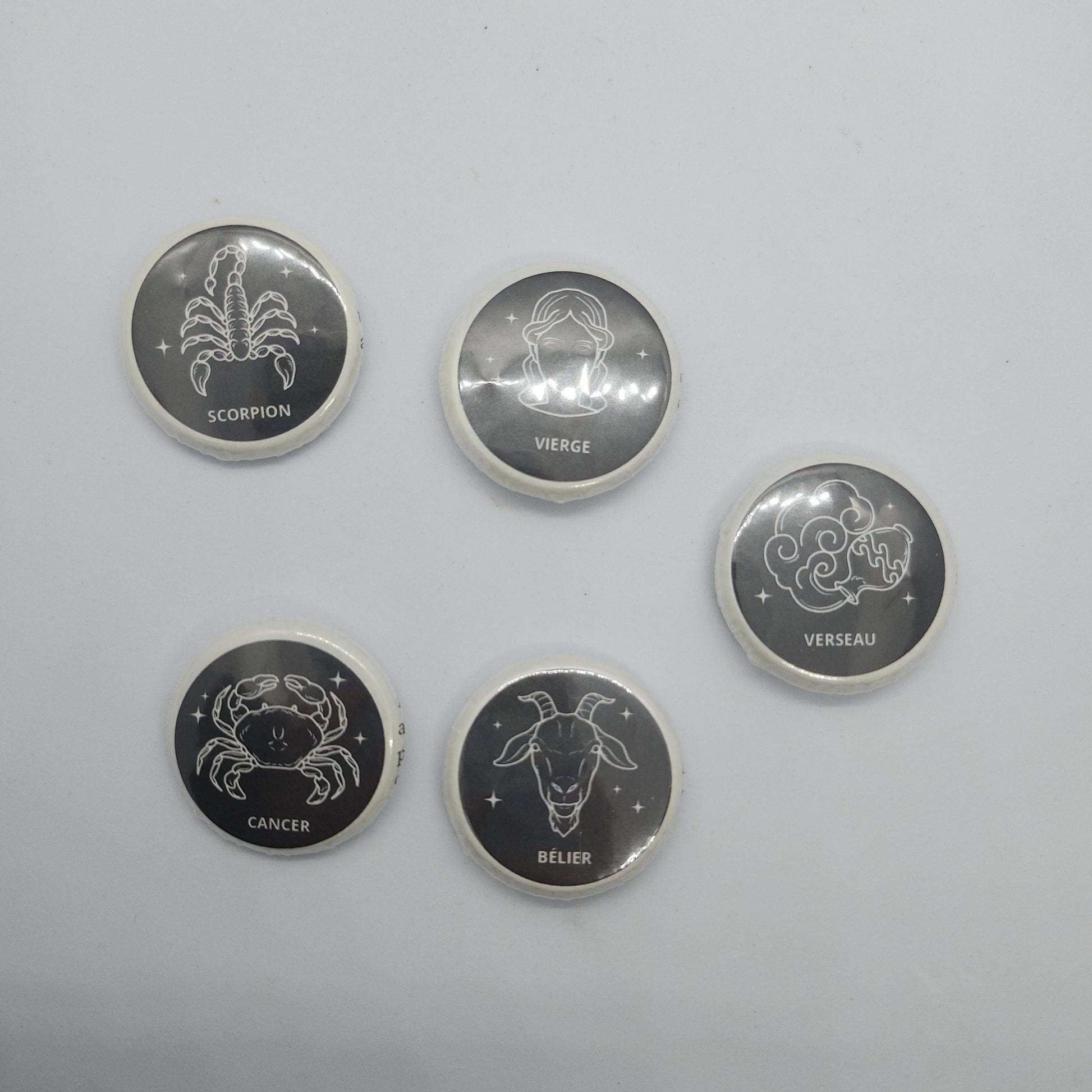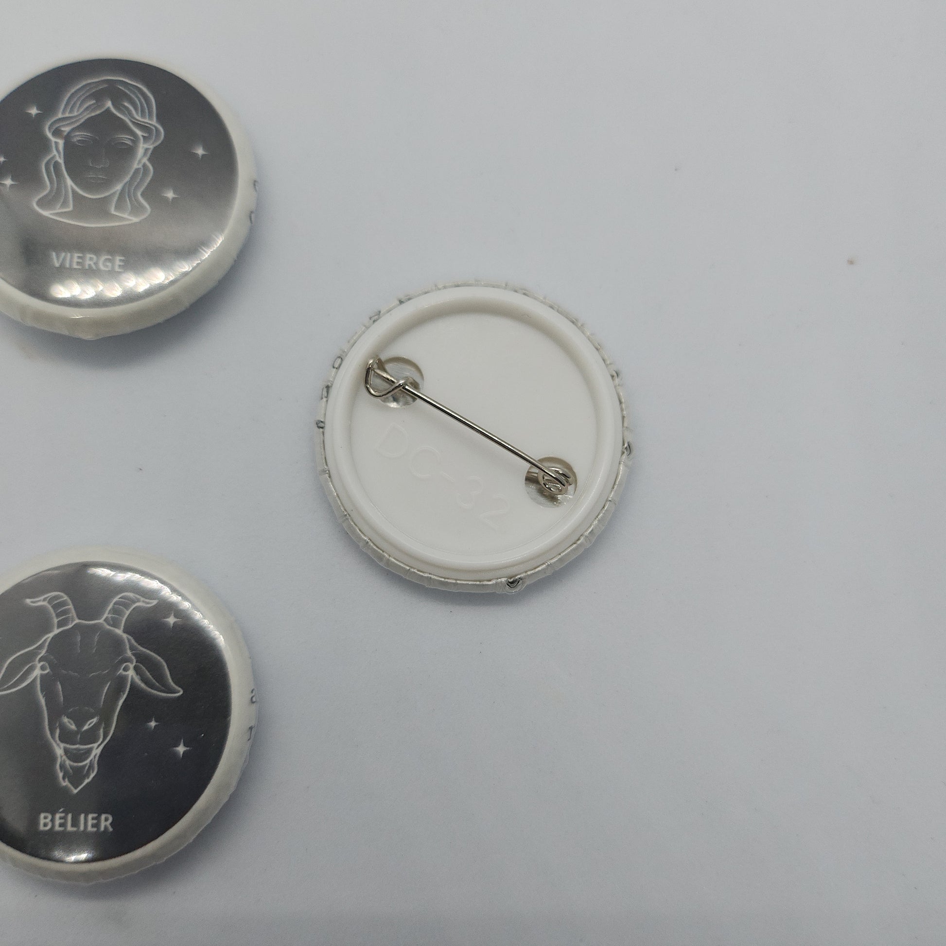 Fixez vos signes astrologiques sur vos vêtements avec ces broches originales en noir et blanc. Exprimez votre personnalité et ajoutez une touche ludique à votre style. Faites votre choix parmi une variété de signes pour montrer votre signe astrologique avec un petit clin d'œil!