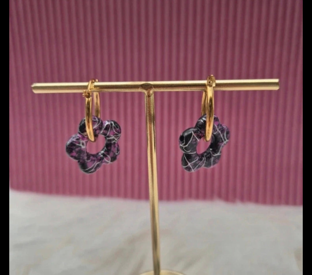 Une paire de créoles ornées de 8 paires de fleurs interchangeables en acrylique.