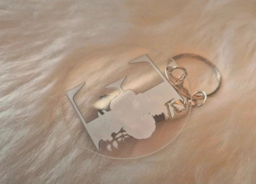 Ce porte-clé en acrylique arbore fièrement la lettre E.